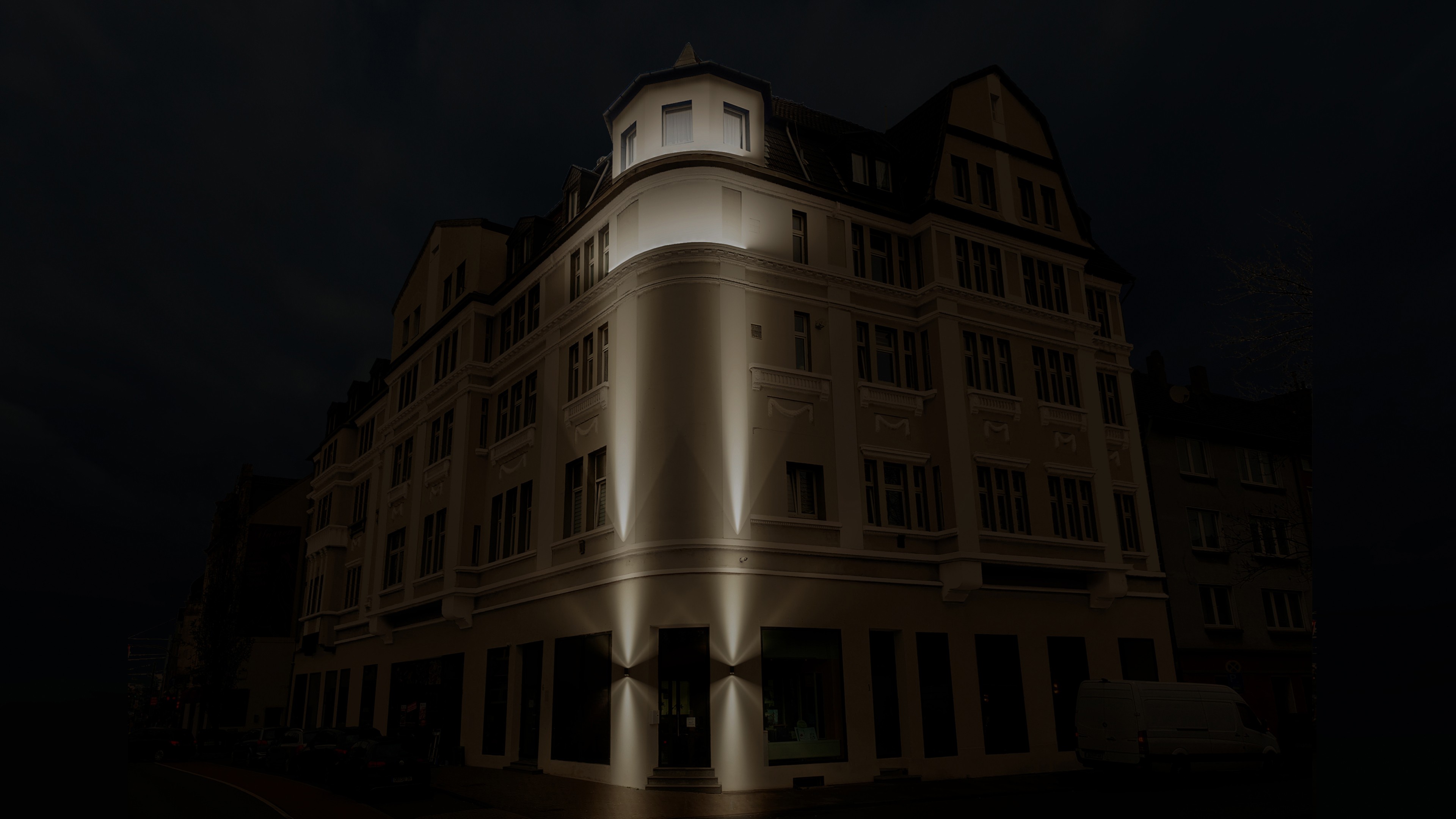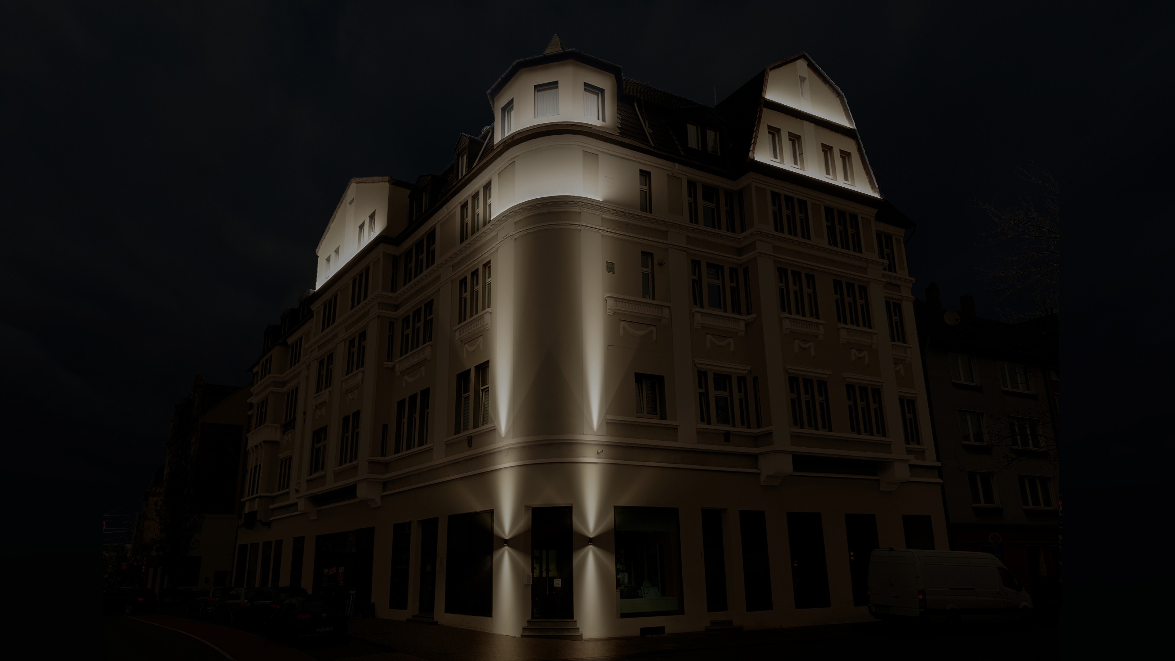 Durch die bewusste Kombination aus funktionaler Fassadenbeleuchtung und gestalterischer Akzentsetzung erhält das Gebäude eine eigenständige Identität bei Nacht. Licht schafft Orientierung im Stadtraum, wertet das Umfeld auf und macht die architektonische Qualität des Gebäudes auch nach Einbruch der Dunkelheit erlebbar.